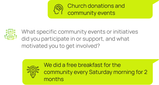 Please list the names of any organizations, events, or activities you have been involved in or have supported in the past 12 months
